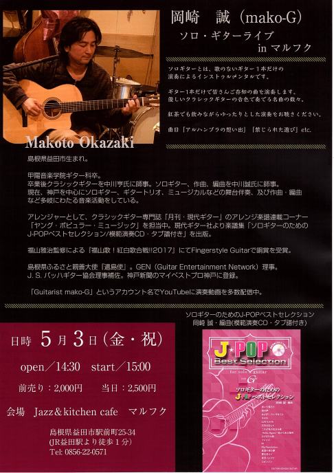 2019/5/3(金・祝) 岡崎誠 ソロギターライブ